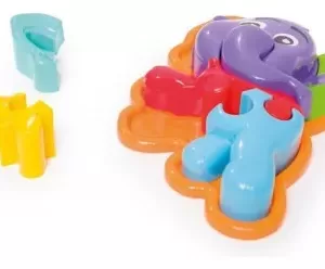 Estimula la coordinación motora, promueve el desarrollo cognitivo y las nociones de colores, formas y tamaños. Las piezas tienen colores y formas que despiertan la curiosidad de los más pequeños. Acompaña siete piezas didácticas para jugar y montar el elefante y luego simplemente encajar el soporte en la espalda para usarlo como cuadro en la habitación de los más pequeños.