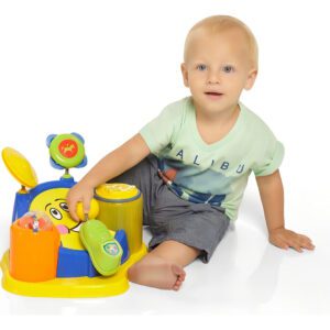 Es una batería súper divertida que viene con piezas didácticas, luces, platos y una esfera giratoria. Tu bebé se divertirá mucho con las diferentes opciones de sonido cuando toque el pedal.