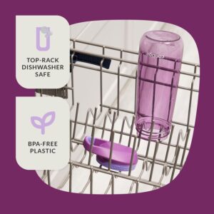 La tapa giratoria hace que esta botella sea fácil de limpiar y la tapa es apta para lavavajillas