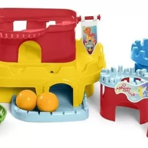 Tiene la forma de un castillo y sigue siendo un super tobogán. Hay cuatro pisos para que las bolas se deslicen. ¡Y viene con banderas para identificar el reino que es completamente desmontable! Son 10 piezas para desmontar, montar y formar el castillo.