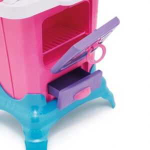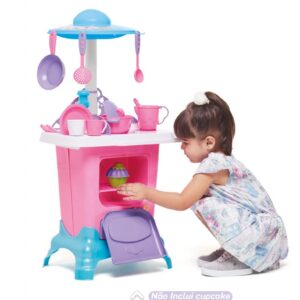 ¡Del mundo de las princesas a tu hogar! Llena de estilo y funcionalidad, la cocina castillo da alas a la imaginación de los niños. Permitiéndoles crear, simular y reproducir situaciones cotidianas. El encanto de la cocina se debe al anafe superior con piezas de montaje, ¡como en una estufa de leña real! Otro detalle es la campana multiusos, donde se pueden colgar los utensilios de cocina. Y para completar la diversión, la cocina viene con varios accesorios, como platos, tazas, cubiertos, olla, jarra de leche con tapa, además de tener una bacha con un grifo que sale con agua real, también tiene otro horno en la parte inferior, con un cajón. .