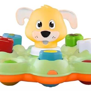 El Pula Bloco viene con cuatro bloques numerados 1 – 2 – 3 – 4 que encajan en la base del juguete con diferentes formas. La sorpresa y la diversión se apoderan del juego cuando se presiona la cabeza del animalito. ¡En este momento los bloques saltan del juguete! Y para que suene la melodía, basta con presionar la estrellita que hay delante de la cabeza del animal.