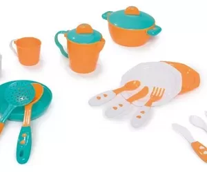 Para equipar la cocina y hacer una comida deliciosa. ¡El kit tiene hermosos colores y viene con pequeños platos, tazas y cubiertos!