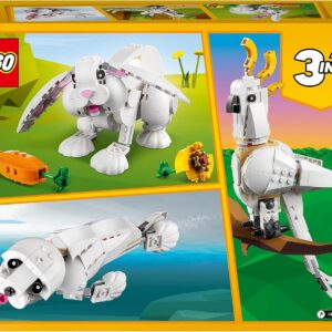 Los niños de 8 años en adelante amantes de los animales se volverán locos por este set LEGO Creator 3en1 que incluye un adorable conejito de juguete blanco que se reconstruye en una divertida cacatúa o una foca blanca