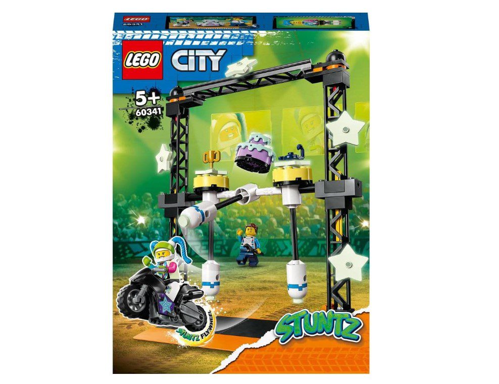 A los niños a los que les gusta competir les encantará este desafío de acrobacias de LEGO City Stuntz The Knockdown Stunt Challenge con motocicleta de juguete y elementos que brillan en la oscuridad