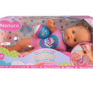 El Muñeco Bebé Nenuco de Famosa es un juguete tierno y de alta calidad, ideal para los más pequeños. Mide 35 cm de alto y viene con accesorios como un biberón y un sonajero para interactuar, promoviendo el juego simbólico y el desarrollo emocional en los niños. Este muñeco tiene un diseño detallado y adorable, con materiales suaves y resistentes que lo hacen seguro y duradero. Es perfecto para jugar a cuidar y atender a un bebé, fomentando la empatía y habilidades motoras en niños a partir de los 3 años.