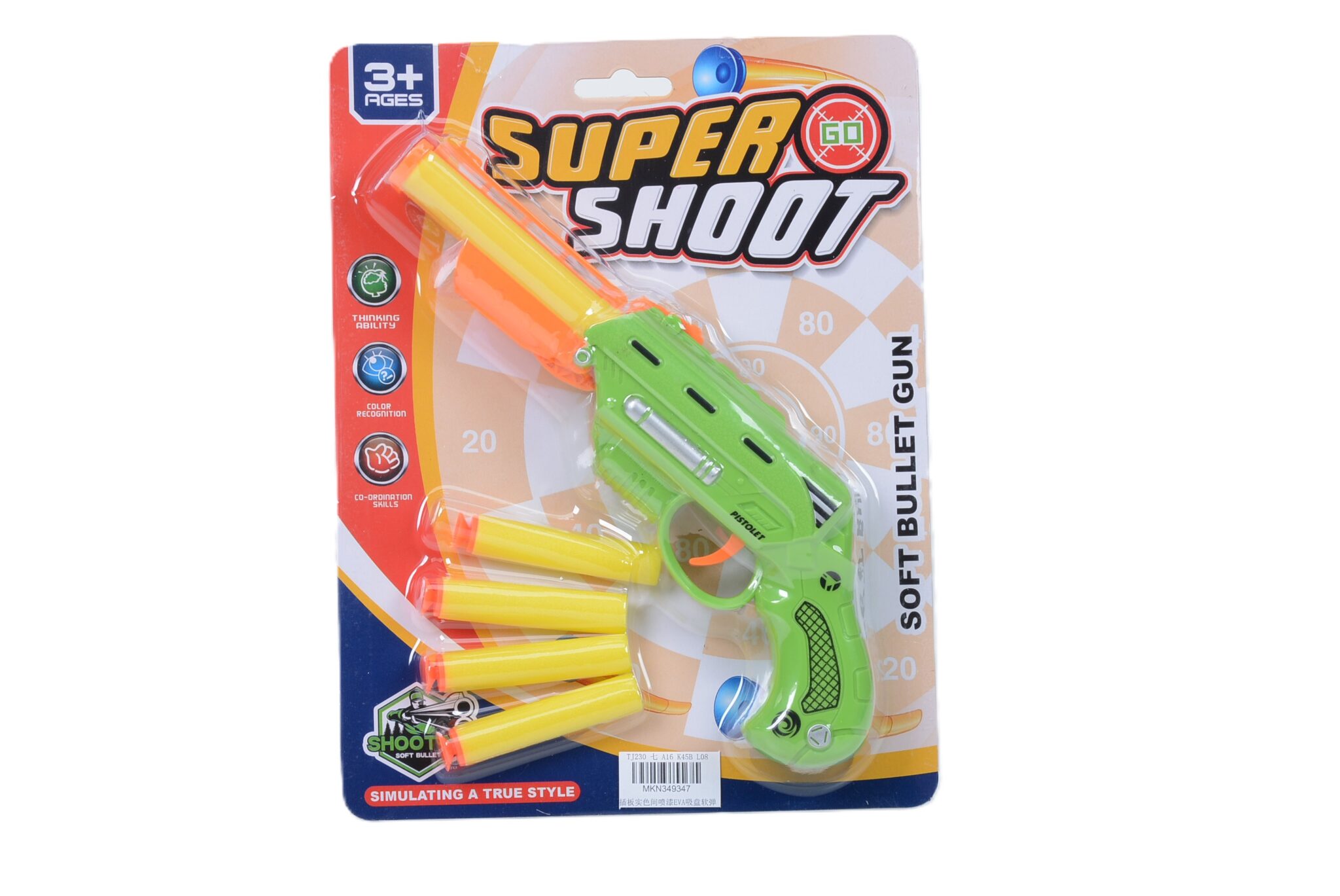 PISTOLA SUPER SHOT VERDE C/DARDOS DE GOMA EVA