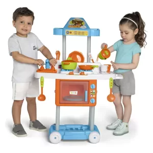 Jugar a cocinar estimula la creatividad y la imaginación. El Riva tiene un fregadero, estufa y horno de microondas. La diversión se completa con ollas, platos, tazas y cubiertos de un chef. ¡Y para hacer el juego más divertido, la cocina tiene ruedas para llevar la cocina de un lado a otro! ¡Un juego delicioso para todas las horas!