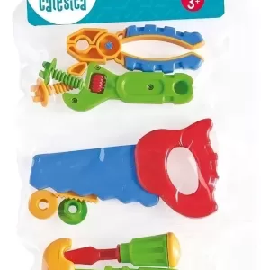 ¡Herramientas súper coloridas para crear, armar y desarmar! El kit viene con pinza, destornillador, llave inglesa, llave de tubo, serrucho que hace el mismo ruido que el real, martillo, tornillos y tuercas.