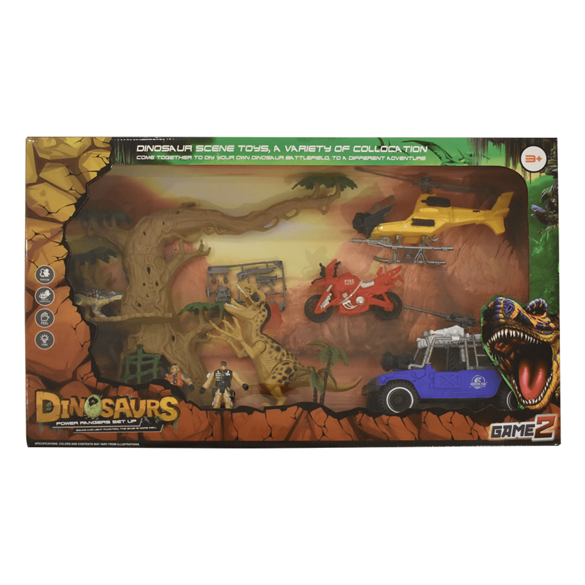 SET MILITAR C/DINOSAURIO, AUTO, MOTO Y HELICÓPTERO