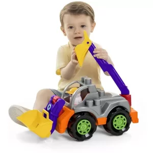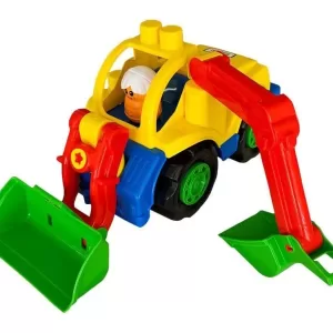 El camión está completo para cargar y transportar tierra, arena o piedras de un lado a otro. Viene con una pala removible con ruedas, viene con un caparazón y un cargador que encajan en diferentes posiciones del camión.